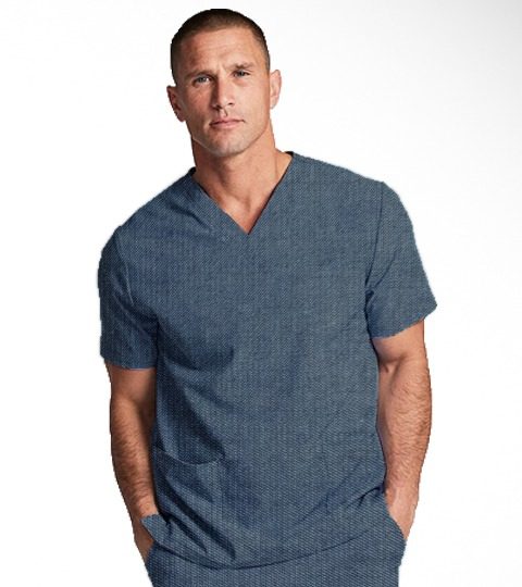 Denim scrub top v neck 2 pockets normal half sleeves unisex